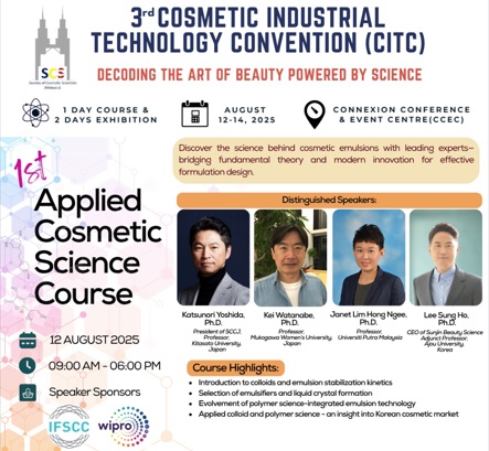 Looking ahead, the council has set ambitious goals for 2025. We aim to sustain and build upon our young society, now two years old, by continuing to raise the bar in cosmetic science through workshops, seminars, and maintaining a robust network platform. Our efforts will culminate in the organization of CITC 2025, which promises to be even more impactful. We therefore call upon industry players to actively participate as organizing committee members, contributing their expertise and insights to our initiatives.